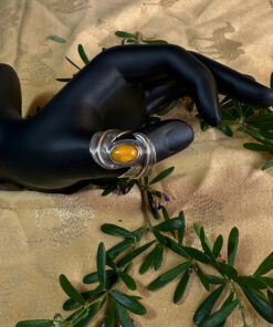 Viên đá chủ Topaz thiên nhiên được cắt giác lấp lánh với kích thước ~12.16 x 9.74 mm, nằm ở trung tâm như trái tim thanh tịnh, được bao bọc bởi vòng hoa ruby mang ý nghĩa yêu thương, bảo vệ và tỏa sáng từ nội tâm.